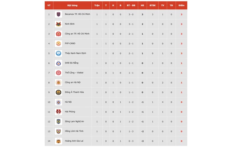 Đây là nguồn tham khảo hữu ích cho những ai yêu bóng đá nội, muốn nắm bắt tình hình giải đấu một cách chính xác và tiện lợi.