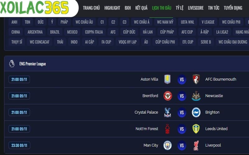 Xoilac Link phân loại rõ ràng lịch thi đấu cho từng giải như Ngoại Hạng Anh