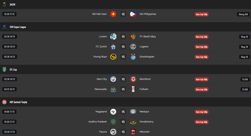Trang web này sắp xếp lịch theo vòng đấu rõ ràng, giúp người xem dễ dàng nhận ra: